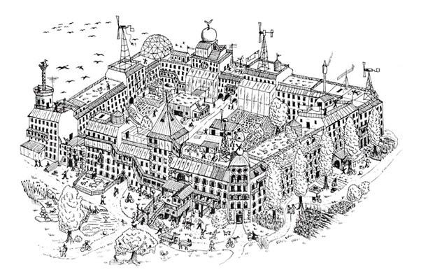Sketch of a bolo, a utopian settlement where the fictional utopian language of asa'pili might be spoken